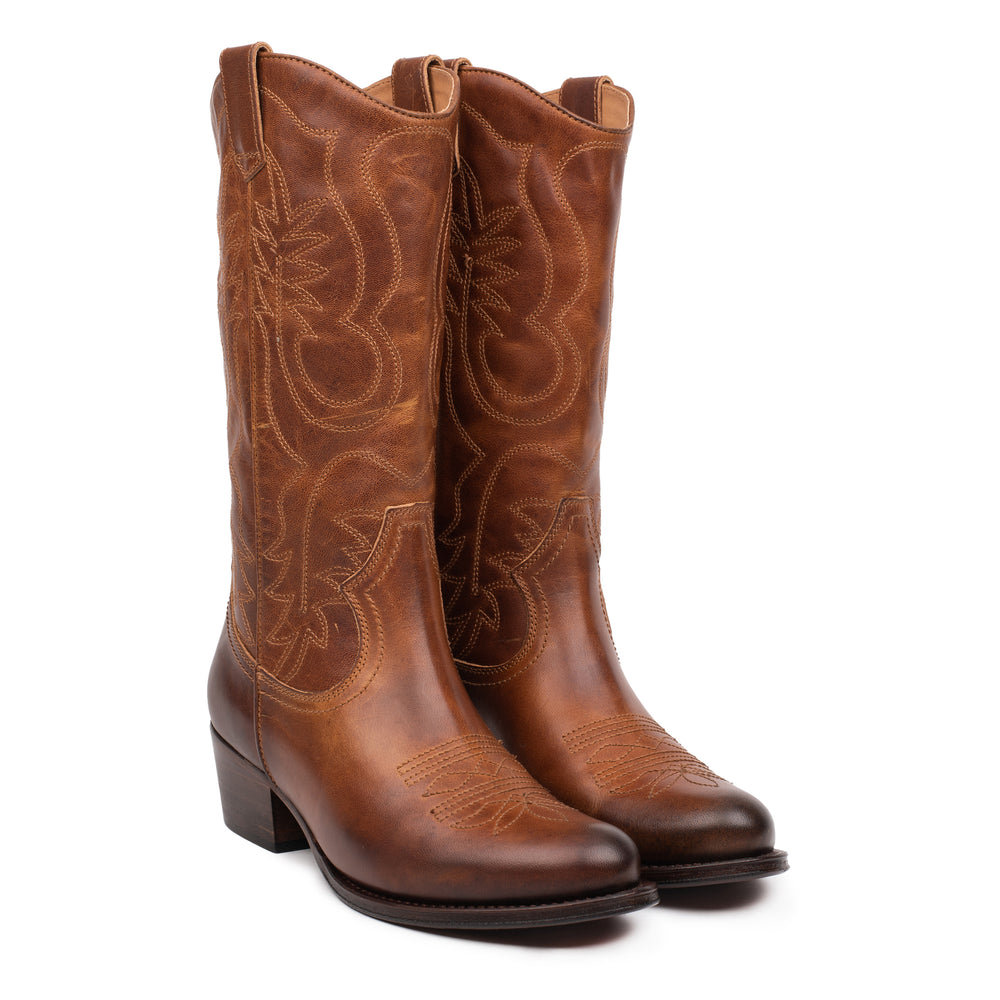 DULCE WESTERN Cognac Leather Pull up