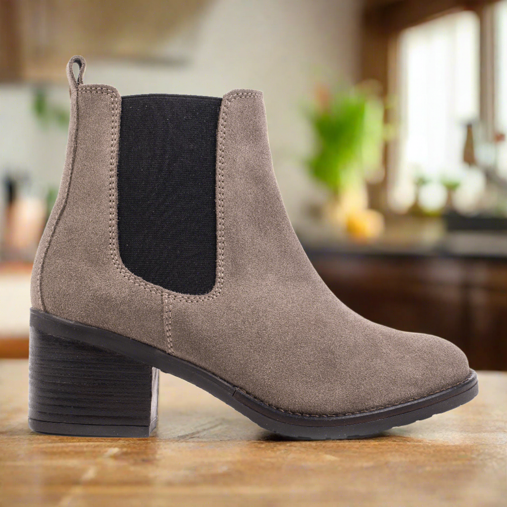 • Produsul este fabricat din piele velur bej/taupe de calitate superioară