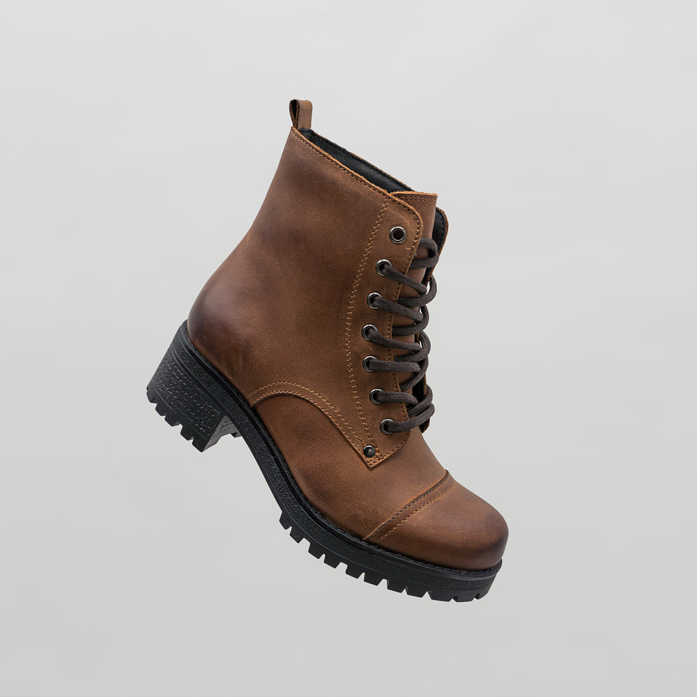 NORA ANKLE LACE BOOT Tan Waxy Leather