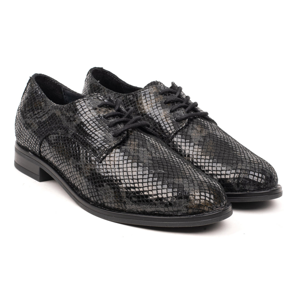 Închiderea se face cu şireturi subţiri rotunde cerate, trecute prin perforaţiile feţelor, evitând alte elemente metalice, şi care lasă pantoful simplu şi confortabil la purtare.